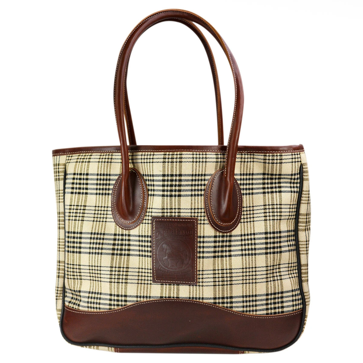 The 5/A Baker Taylor Tote is made with attention to detail and with the finest quality leather to stand out in the crowd. Featuring the traditional Baker Plaid look with either Brown or Black finish. It is fully lined and beautifully finished, perfect for out on the town.
