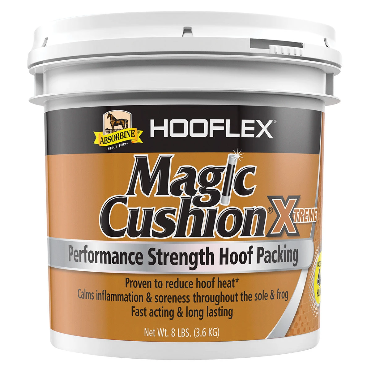 Magic Cushion Xtreme by Absorbine uses a higher concentration of ingredients than the original to provide faster, stronger relief for performance horses. Magic Cushion hoof packing helps support hooves in several ways including relieving sole bruising and post-trimming soreness, treating abscesses, and fighting bacterial and fungal infections in the hoof. It can be used as needed, or packed under a shoe and pad and left in place through the shoeing cycle.