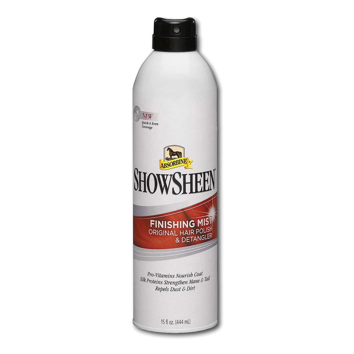 Part of the #1 selling Showsheen line, the Showsheen Finish Mist by Absorbine is perfect for last minute touch ups. Continous aerosol sprayer offers uniform and complete coverage. Features pleasant jasmine and sandalwood scent, giving you and your horse an aromatherapy session during grooming. With Showsheen, you know you’ll be getting top of the line coverage and results!