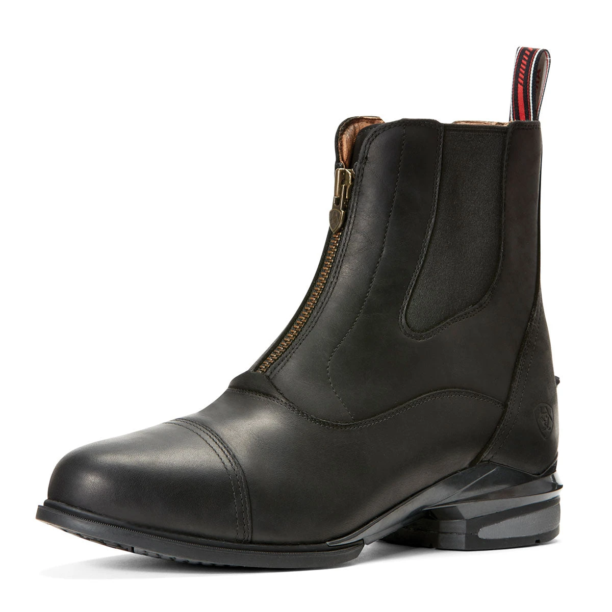 Ariat Devon Nitro Zip Front Black Mens Paddock Boot featuring Ariat waterproof technology, is designed with the rider in mind. Its shock absorbing heel and duratread outsole featuring rider tested traction zones for maximum wear, gives this boot the looks and feels you deserve! Cushioning runs the length of your midsole, providing excellent shock absorption allowing for longer wear. Perfect to wear with your Ariat riding attire.