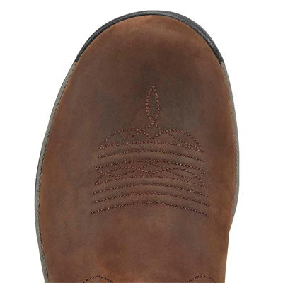 Ariat Terrain Ladies Pull on H2O is designed for all day comfort and the tough wear and tear durability barn life has to offer. The Terrain H2O in distressed brown combines a western look with work boot features in a performance boot that is built for ranching, outdoor working, riding and all weather endurance. A must have boot for working and riding comfort.