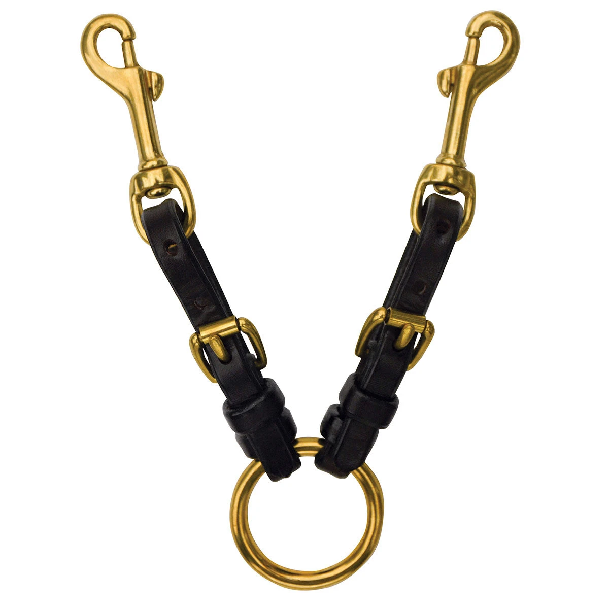 Deluxe Lunging Adapter Strap in dark oil leather enables equal pressure on both sides of the bit while lunging or leading horse. Also great for Sport Horse In Hand classes.