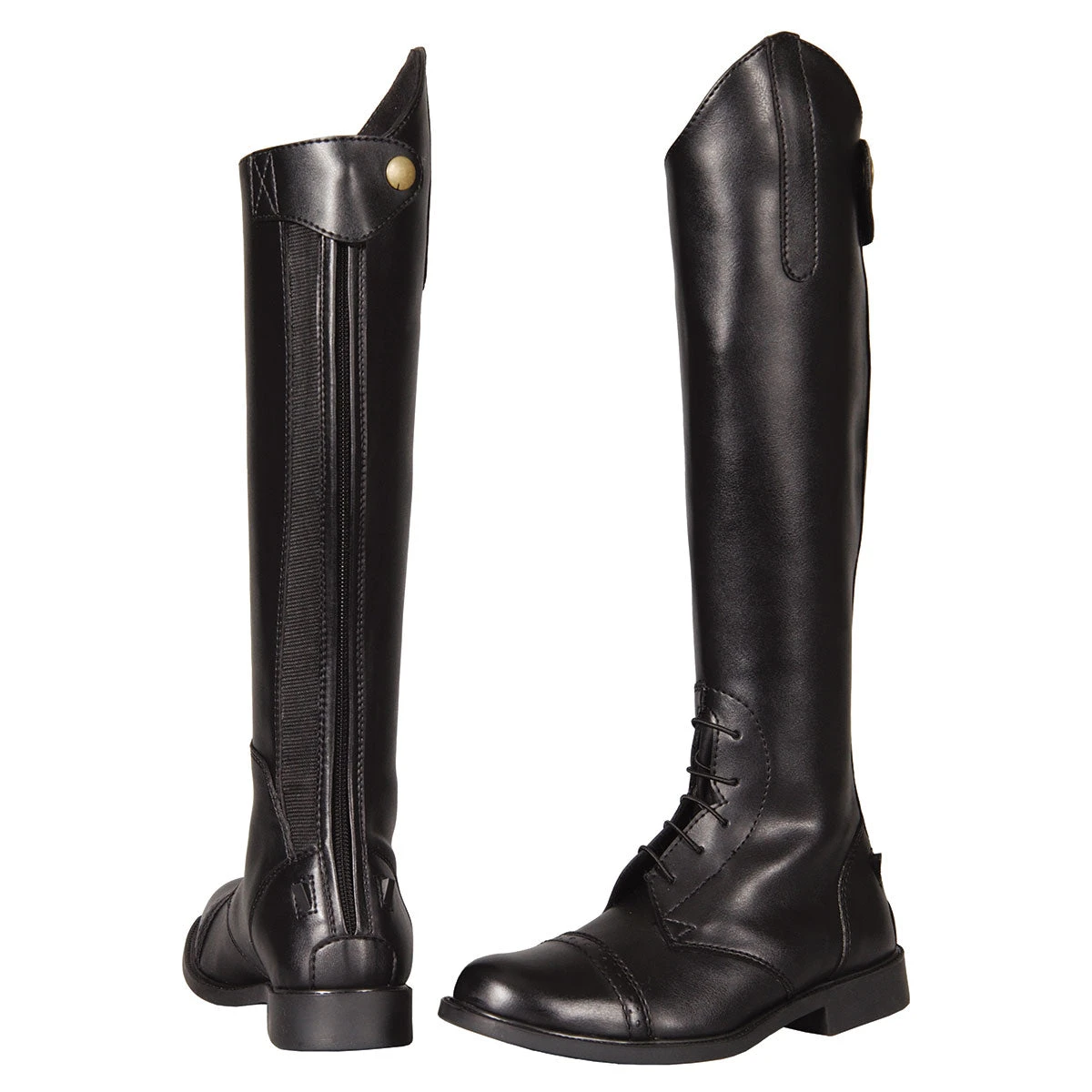 TuffRider Leather Like Zip Back Kids Field Boot offer the the look and feel of leather constructed of durable water resistant, faux leather to hold up to the rigors of use. These boots are great for everyday wear or competition.